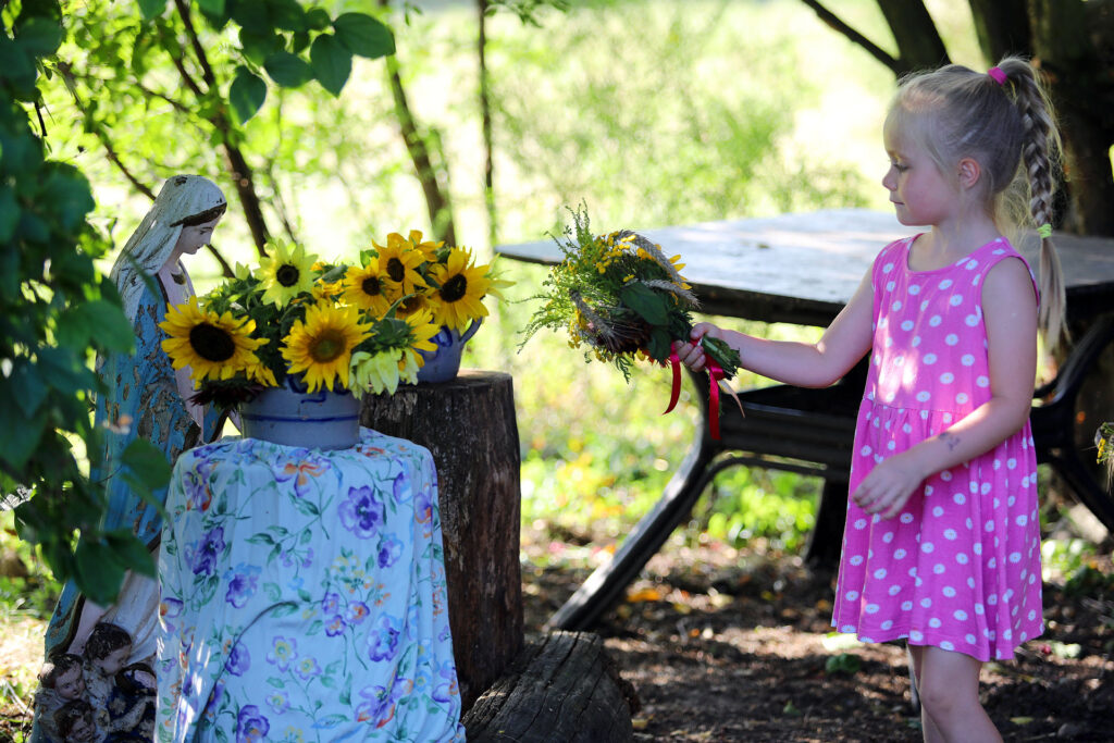 Dzieci zapraszane są na łąkę przy tzw. Hil’deChatce. Jak mówi pani Aneta, tam już są przygotowane dla nich różne zioła, kwiaty, zboża, z których robią bukieciki na święto Wniebowzięcia. „Nazwałam te warsztaty ‘Bóg i Jego dzieci’, czyli bukiecik. Są otwarte dla wszystkich chętnych i czasem sama dziwię się, że przychodzi aż tyle dzieci! Ziół nigdy nie zabrakło”.