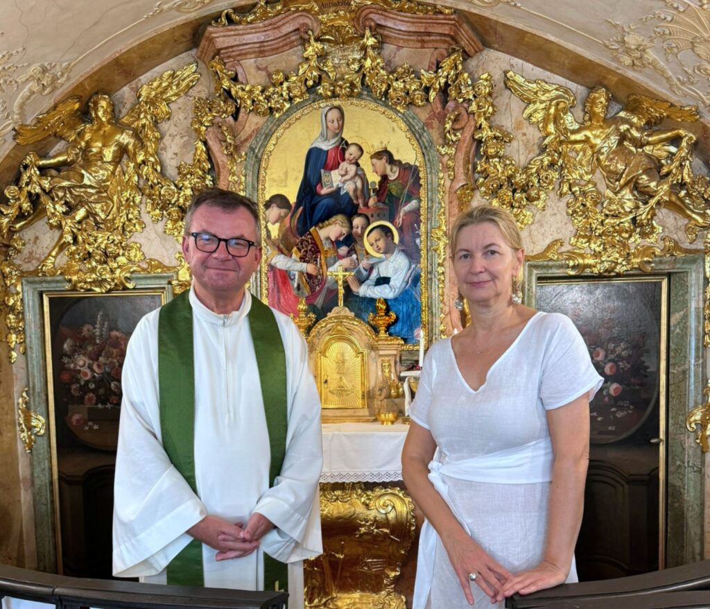 Joanna Łukaszuk-Ritter i o. Michael Zacherl – opiekun kaplicy, fot. archiwum prywatne